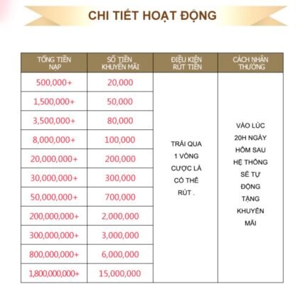 Dưới đây, là hình thức để nhận thưởng khi tham gia trò chơi và nhận tiền thưởng, mốc nhận thưởng như sau: