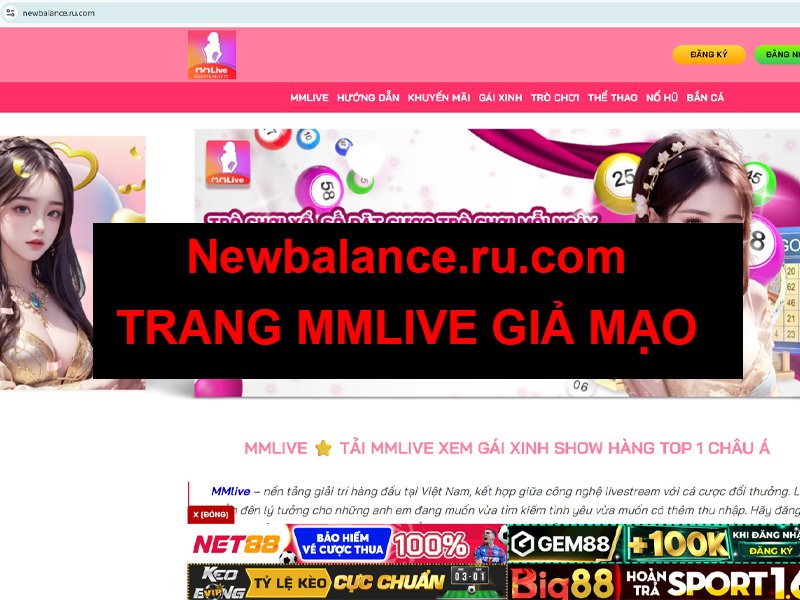 Điều đầu tiên và dễ nhận thấy nhất về sự bất thường của trang web giả mạo này chính là tên miền (domain): https://newbalance.ru.com – Một cái tên hoàn toàn không liên quan gì đến lĩnh vực giải trí hay thương hiệu MMLive.